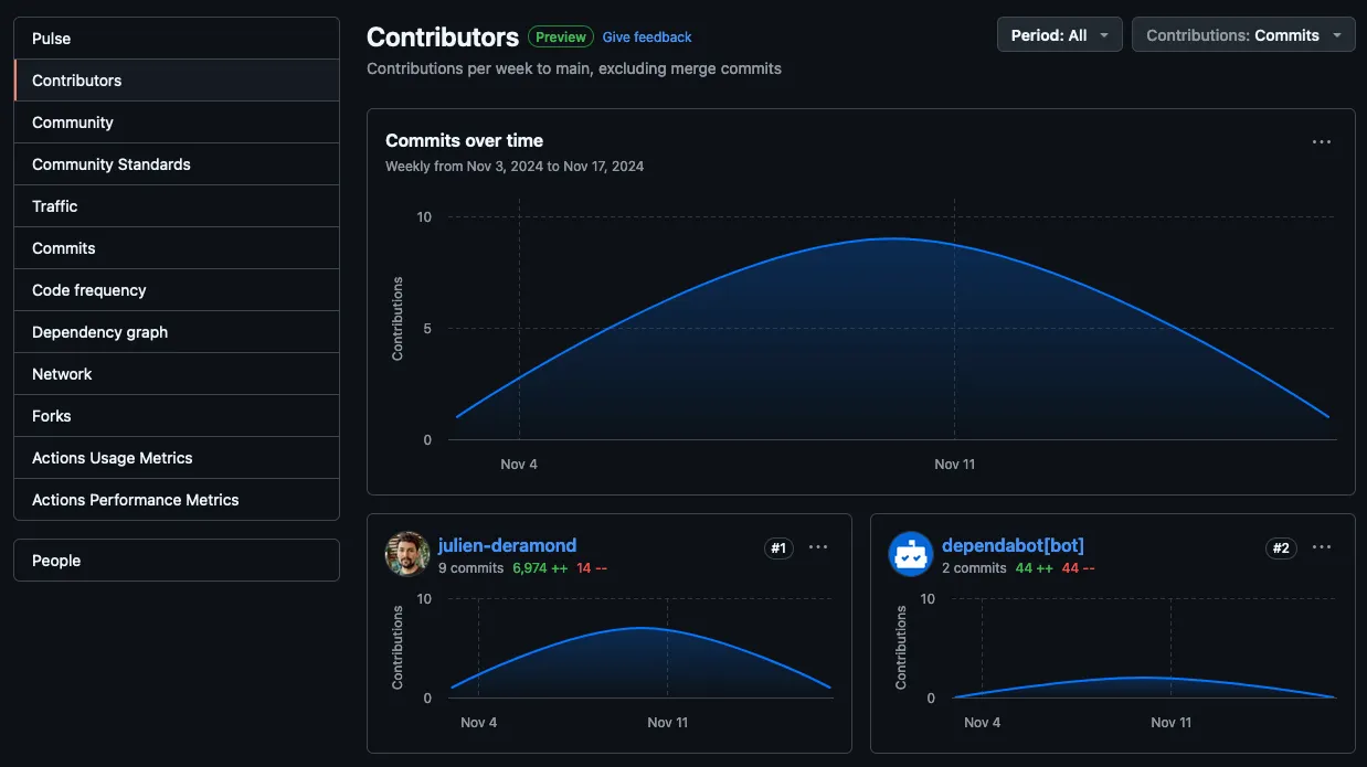 Finally, establish key metrics to track contributions across repositories and aggregate them into a single dashboard. These metrics can help you understand the health of your community, identify top contributors, and recognize emerging talent.